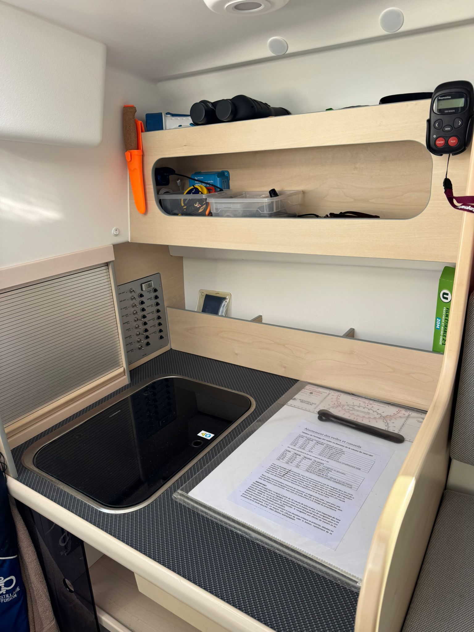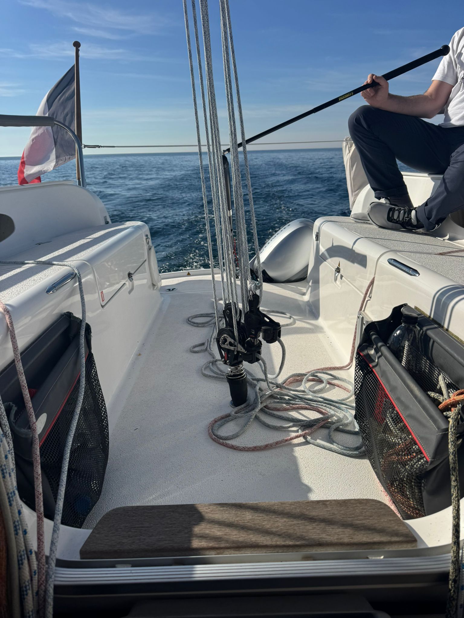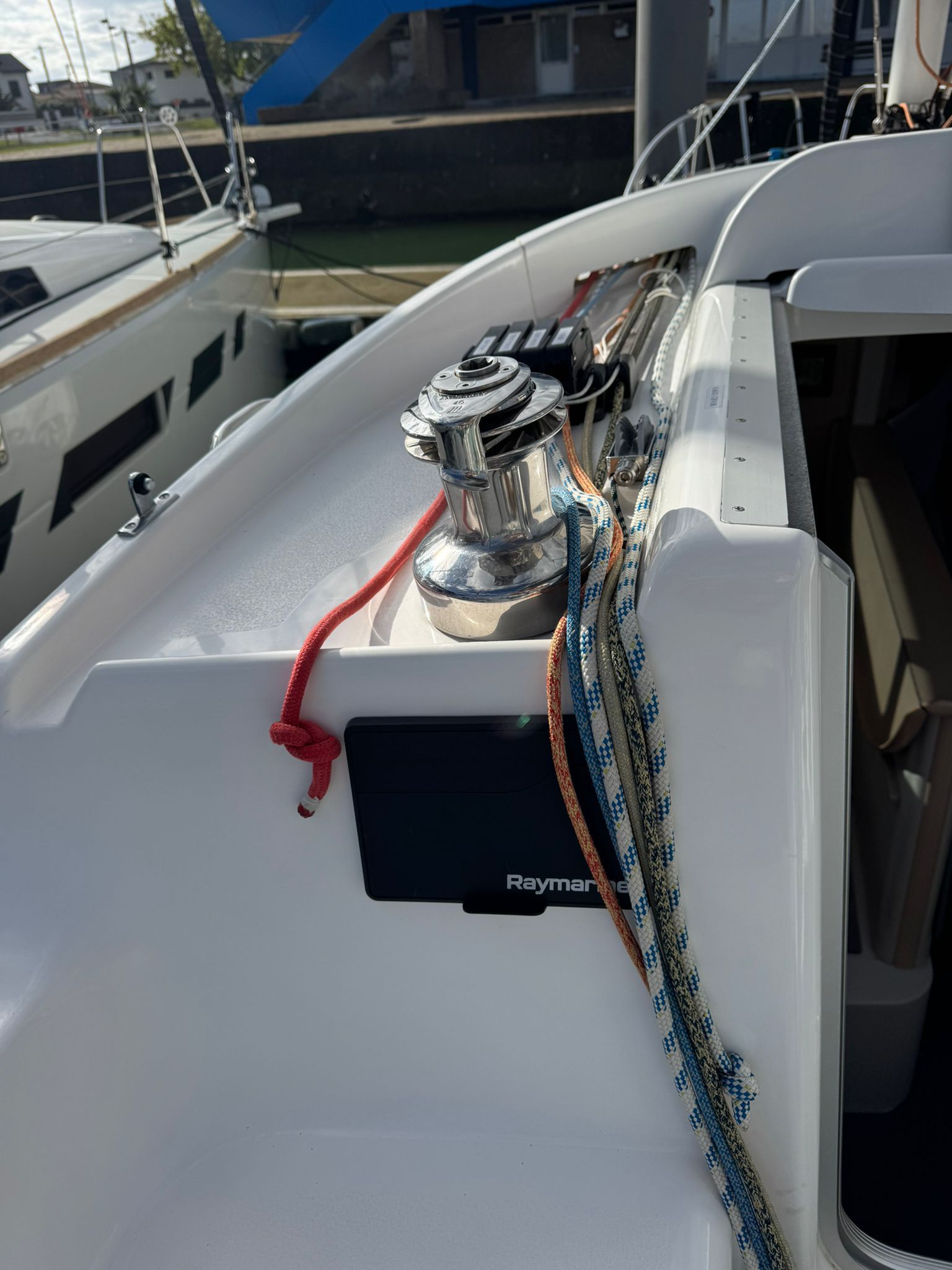 Gv full batten sur chariot et Génois sur enrouleur  avec leurs housses d’hivernage respectives + lazy bag