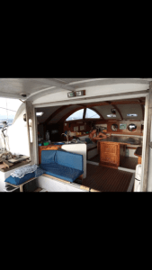 Les GRAND SUD (42-45) étaient des catamaran de grand voyage précurseurs. Conçus par l’excéllent architecte Daniel Tortarolo, ils ont fait l’objet d’une série d’une vingtaine d’exemplaires fabriqués dans le chantier Sud Composites de Balaruc les Bains (créateur ensuite des SWITCH 51). Le principe constructif (CP-Epoxy-verre) procure une grande raideur mécanique pour un poids contenu. Cet exemplaire est probablement le prototype de la série (nous cherchons à confirmer ce point.). Le bateau est décrit par le vendeur comme en très bon état de navigabilité.