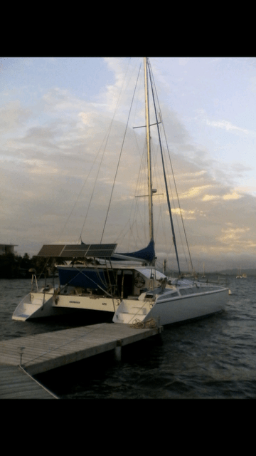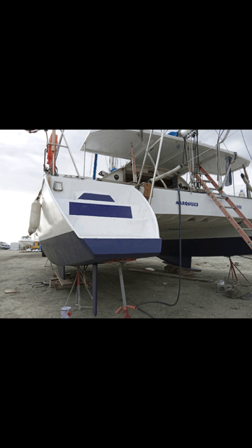 The GRAND SUD (42-45) were pioneering long-distance cruising catamarans. Designed by the renowned naval architect Daniel Tortarolo, they were produced in a limited run of around twenty boats at the Sud Composites shipyard in Balaruc-les-Bains (later the builders of the SWITCH 51). The construction method (plywood-epoxy-fiberglass) provides high mechanical rigidity for a low weight. This particular boat is likely the prototype of the series (we are currently seeking confirmation). The seller describes the boat as being in excellent seaworthy condition.